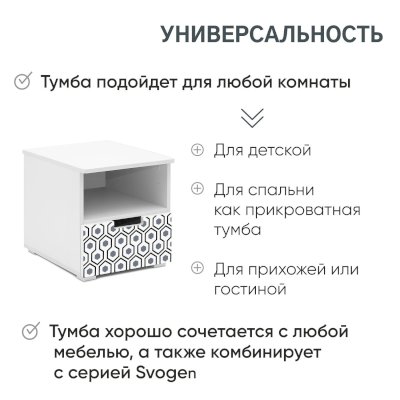 • Стильная лаконичная тумба в скандинавском стиле отлично дополнит другие комплекты мебели Svogen