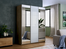Шкаф-купе 3-х дверный Прайм Зеркало/Белое стекло/Зеркало (Е1)