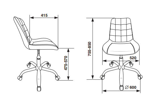 Высота сидения: 475-570