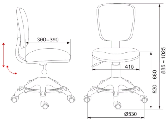 Высота кресла: 885-1025