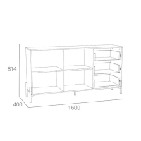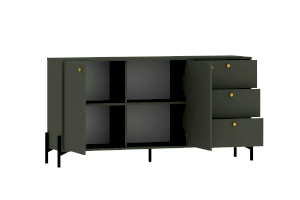 Тумба оснащена полками с двумя распашными дверками, которые закрываются мягко и легко за счет механизма с доводчиком, тремя выдвижными ящиками с системой шариковых направляющих, при помощи которых ящики выдвигаются бесшумно, а оригинальные высокие опоры обеспечивают быстрый и удобный доступ при уборке. Дополните тумбу шкафом из одноименной коллекции, чтобы оптимизировать место хранения и создать особо гармоничную атмосферу.