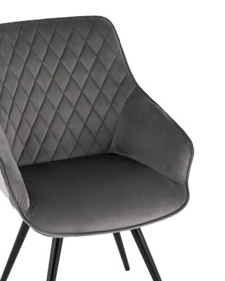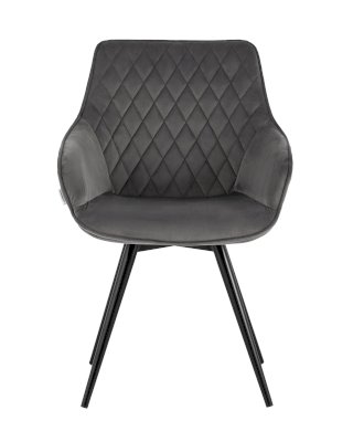 Стильный вращающийся стул Сеул станет прекрасным дополнением кухни, гостиной или рабочего места. Мягкая обивка выполнена из велюра - прочного, износостойкого и легкого в уходе материала. Внутренняя сторона спинки декорирована ромбовидной стежкой. Анатомическая форма сиденья и небольшие подлокотники обеспечивают максимальное удобство и комфорт. Металлические ножки выдерживают значительные нагрузки. Подпятники на ножках не испортят напольное покрытие и предохраняют от скольжения.