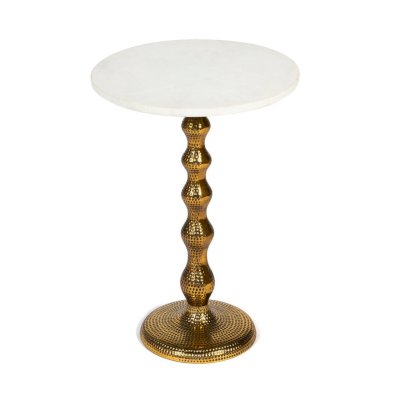 Красивый кофейный столик Secret De Maison BOLLY из коллекции SILVER отлично впишется практически в любой интерьер, поможет сделать его завершенным, более комфортным и уютным. Устойчивое основание столика выполнено из алюминиевого сплава с отделкой под латунь и чеканкой ручной работы, оно играет светом, притягивает блеском, но в то же время выглядит просто и без излишеств. Уникальная столешница из натурального мрамора придает особенную красоту изделию. Благодаря компактным размерам и небольшому весу, столик мобилен. Его можно поставить в любой части комнаты и переместить при необходимости, использовать как по прямому назначению, так и в качестве дополнительной сервировочной поверхности. Модель прочна, надежна, не требует специального ухода и будет долгое время радовать вас своим первоначальным видом. Поставляется в собранном виде.