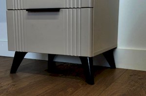 Стильные ручки и выкатные ящики на шариковых направляющих обеспечивают удобный доступ к вещам. Нерегулируемые пластиковые опоры гарантируют стабильность конструкции.